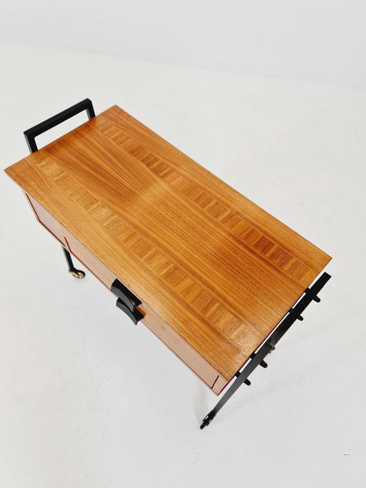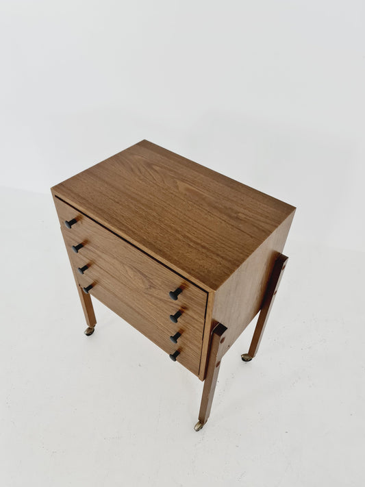 Vintage walnut sweing table/ side table cabinet, 1960s