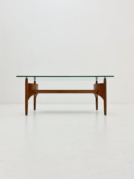 Vintage wood and glass coffee table By Sven Ellekaer for christian Linneberg 1960s