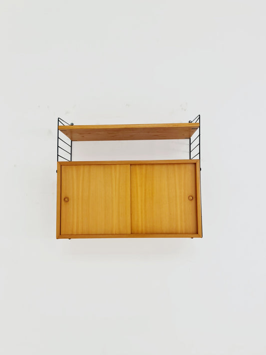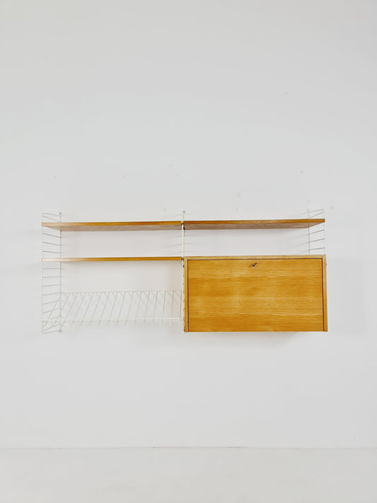 Wall-mounted original Swedish string shelf-system, bookcase cabinet Oak by Nils & Kajsa Strinning, 1960s