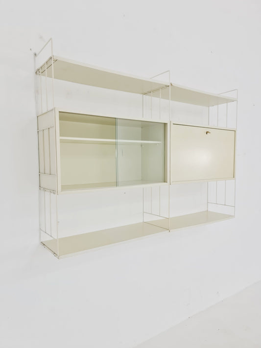 Wall-hanging String shelf-system, bookcase with bar cabinet by WHB Germany, 1950s