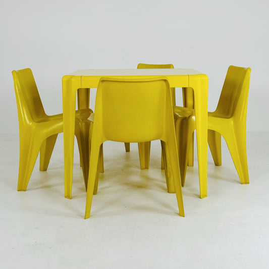 Yellow Set of 4 chairs & table Space age Bofinger BA1171 chair by Helmut Bätzner, 1970s