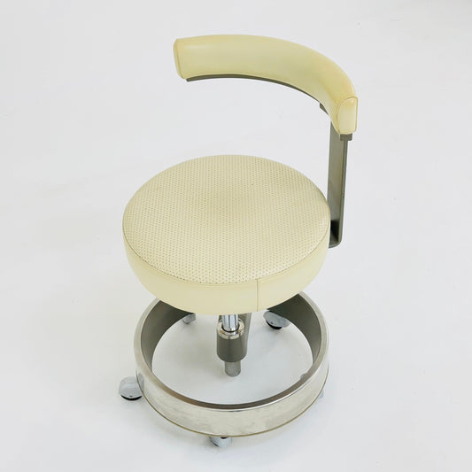 Mid centur beige Siemens Sirona Padded Swivel High Chair Leather Medical Vanity Chrome Germany 1960s