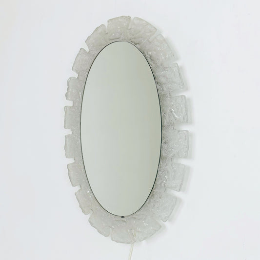 Mid century oval wall mirror with lighting and plexiglass edge by Hillebrand, 1960s