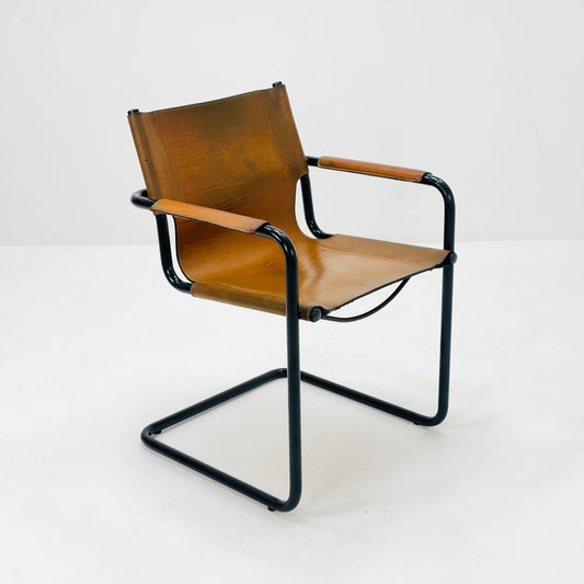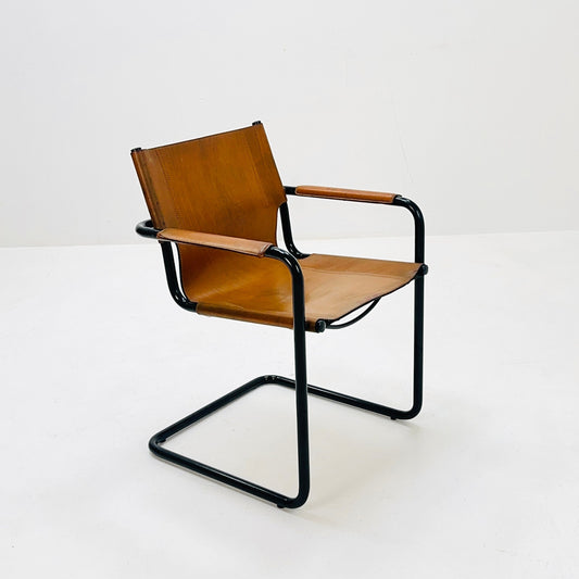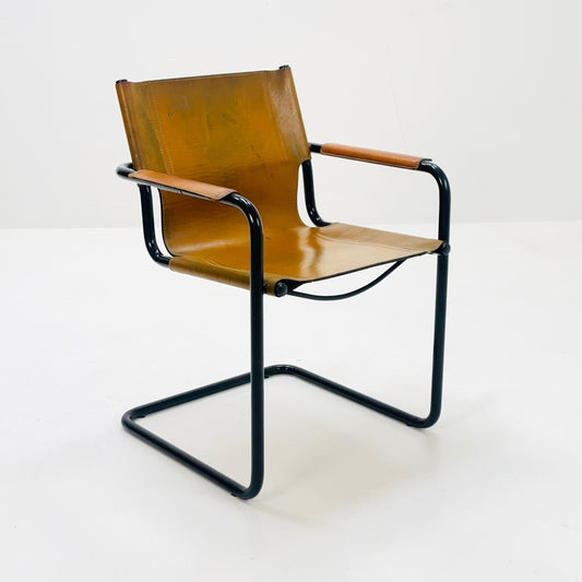 Mid century Bauhaus Visitor leather armchair for Mattei Grassi 1970s Italy