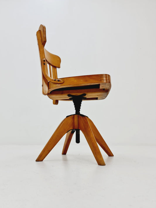 Bauhaus swivel office chair in solid wood By Der FerderDreh 1930s