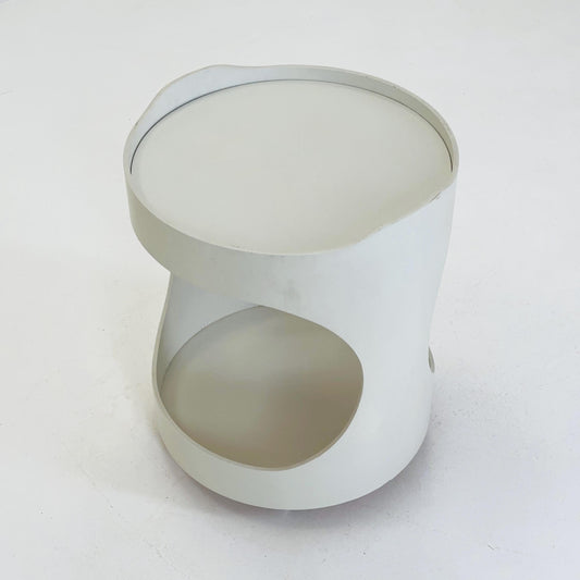 Space Age Luna Side Table 5124 by Opal Möbel, Germany 1970s – Vintage White Rolling Table, Mid-Century Modern