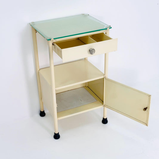 Mid century Bauhaus metal nightstand Auping/Gispen with drawer in white 1960s Germany