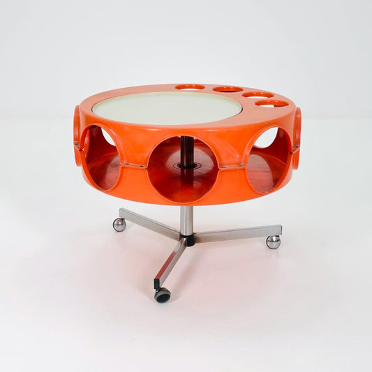 Space Age Rotobar Bar Cart by Curver, Orange & White, 1970s Netherlands