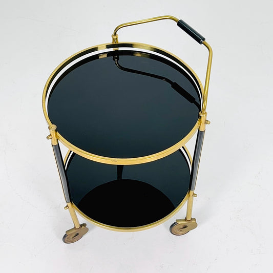 Mid-Century Brass & Black Glass Round Trolley — Germany, 1970s | Elegant Vintage Bar Cart