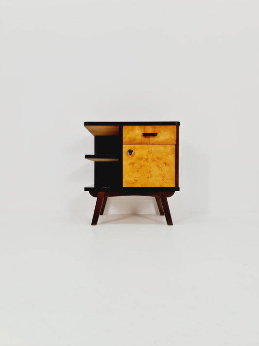 German Mid century beech & Walnut nightstand/ bedside table BY WK Möbel , 1960s