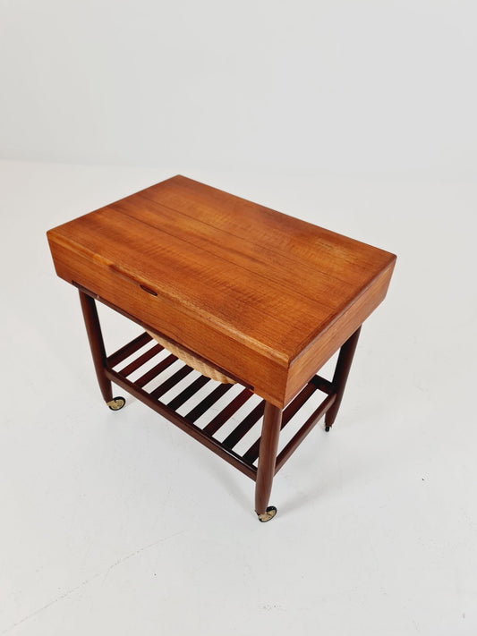 Vintage Danish teak and rattan sewing table/ side table cabinet By Ejvid A.johansson for Uitze , 1960s