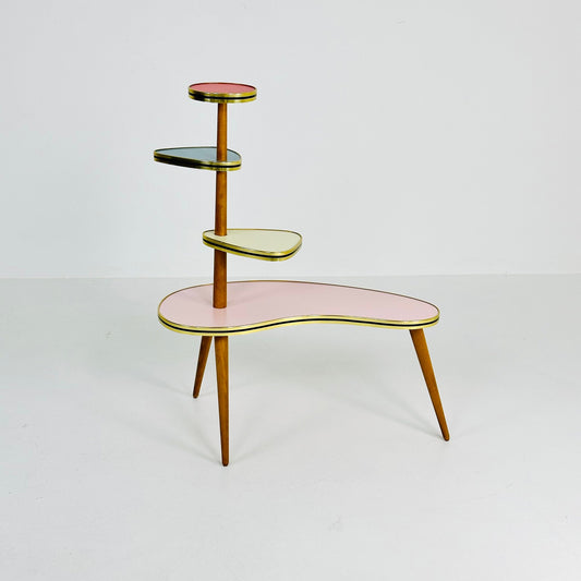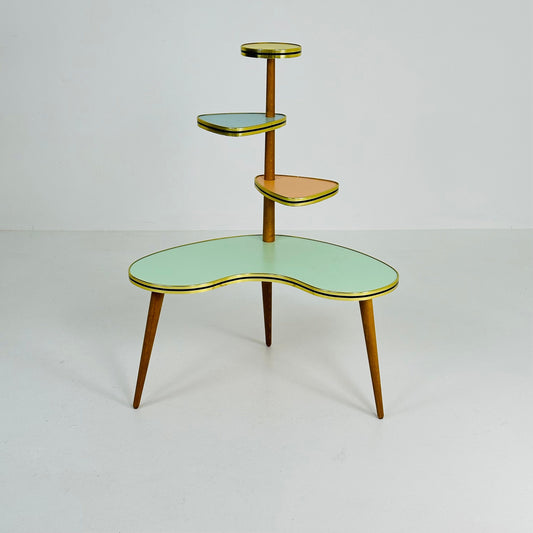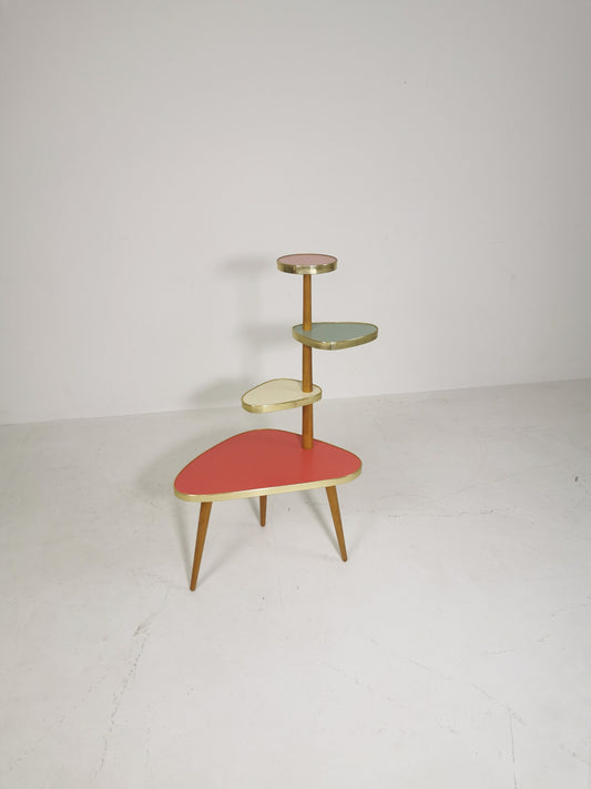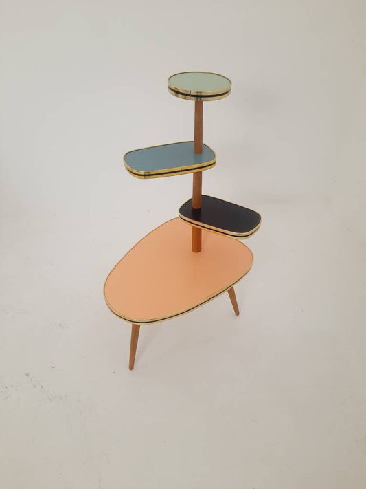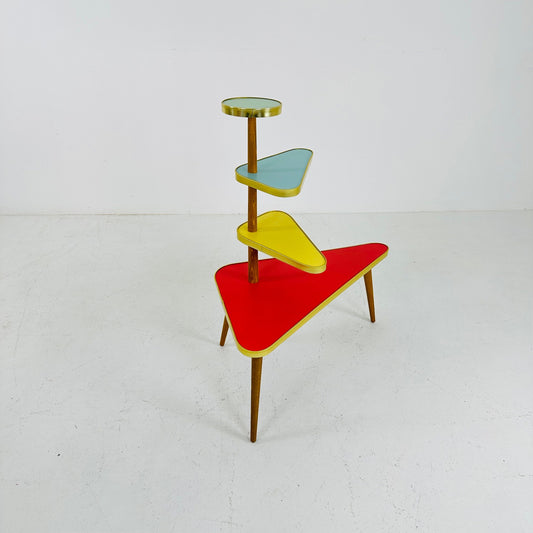Retro 1950s German Plant Stand, Colorful Vintage Mid-Century Minimalist Indoor Plant Stand Side Table Retro flower table