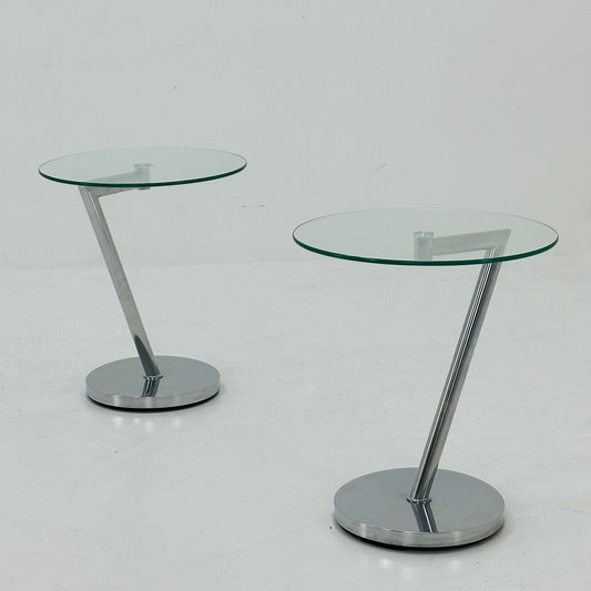 Set of 2 Vintage glass chrome side table /end table 1980s
