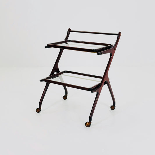 Mid-Century Italian Bar Cart by Cesare Lacca – Walnut & Brass Trolley with Removable Glass Trays, 1950s ltaly