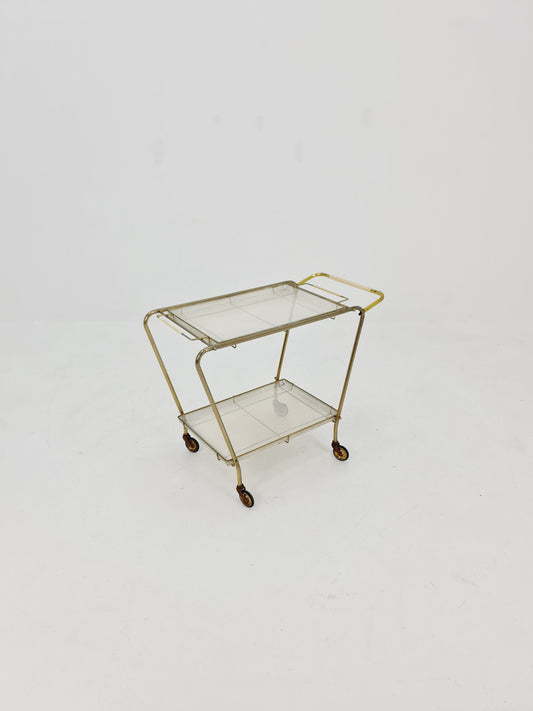Vintage German mid century trolley bar cart in Brass & metal, with Tray 1950s