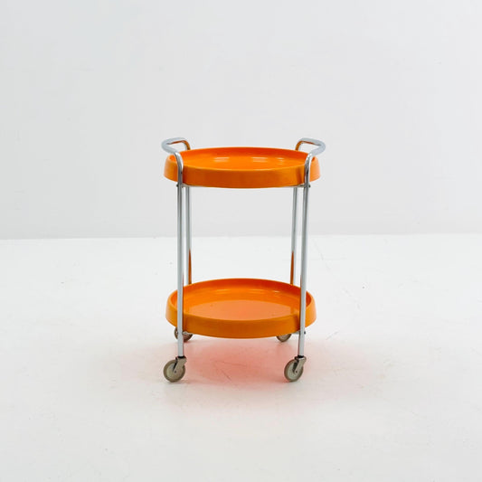 Mid century Spaceage Plastic and Metal Chrome Round Italian Bar Cart, 1980s