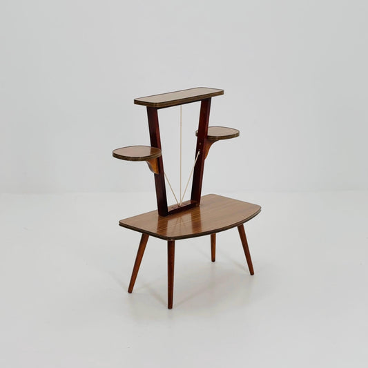 Large German Plant Stand, Brwon Vintage Mid-Century Minimalist Indoor Plant Stand Side Table Retro flower table 1950s Germany