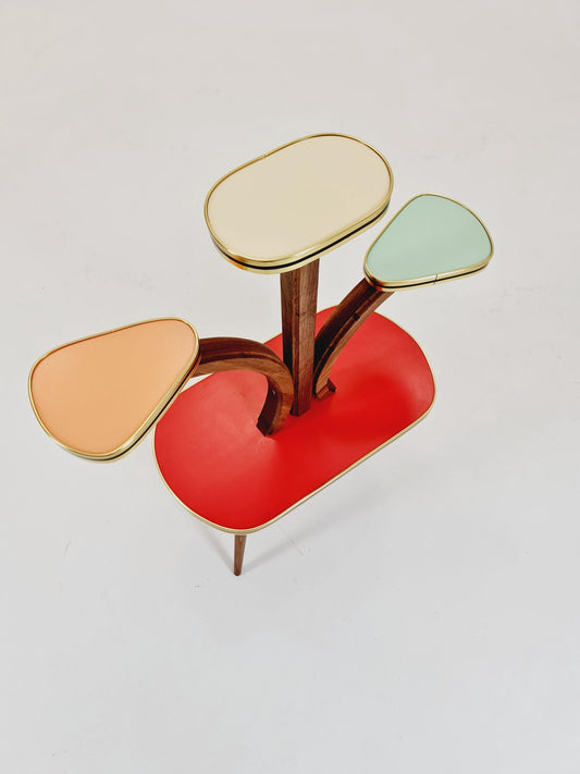Big 1950s German Plant Stand, Colorful Vintage Mid-Century Minimalist Indoor Plant Stand Side Table Retro flower table By Opal