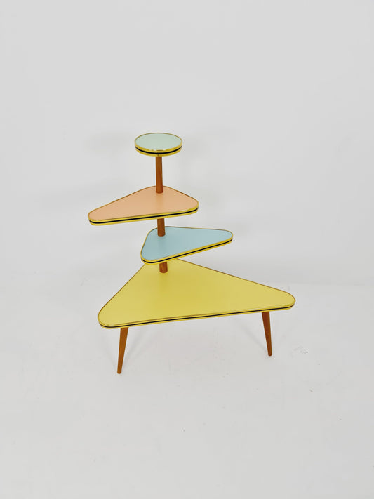 1950s German Plant Stand, Colorful Vintage Mid-Century Minimalist Indoor Plant Stand Side Table Retro flower table