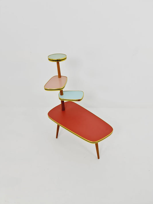 1950s German Plant Stand, Colorful Vintage Mid-Century Minimalist Indoor Plant Stand Side Table Retro flower table