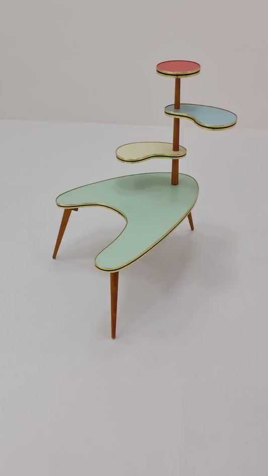 Big 1950s German Plant Stand, Colorful Vintage Mid-Century Minimalist Indoor Plant Stand Side Table Retro flower table