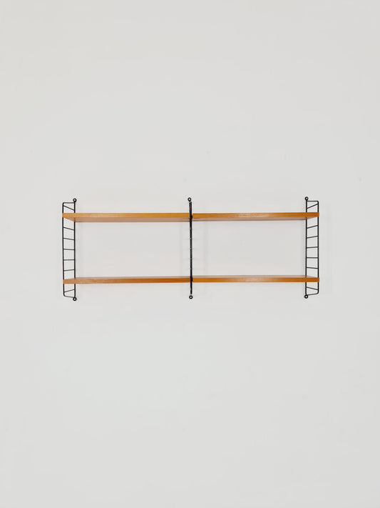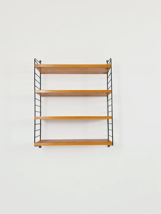 Original MCM Ash shelving system - consists of Black lacquered metal ladders, from string Stockholm 1960s