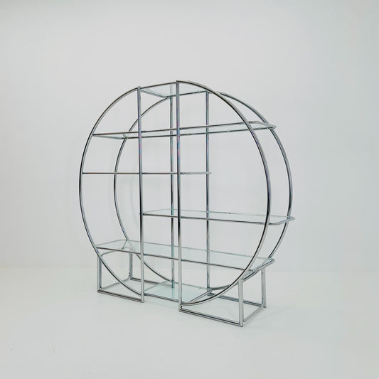 Rare Mid-Century Chrome Round Etagere | Abhika Austin Tubular Steel Shelf | Art Deco Bauhaus Display Shelf | 1980s Italy