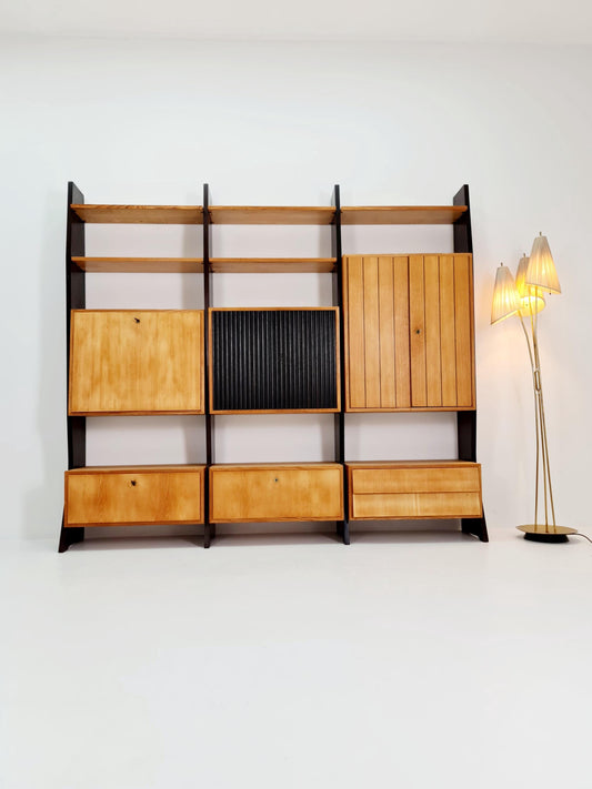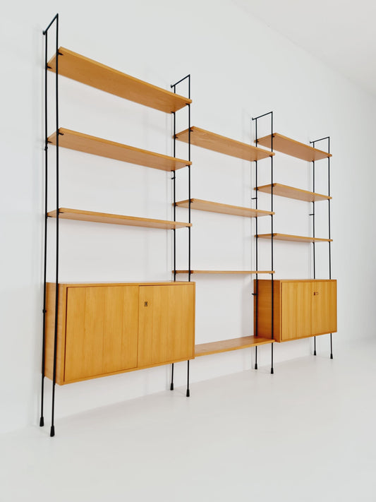 Mid century Ash wall shelving unit by Hilker for Omnia, Germany, 1960s