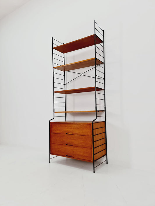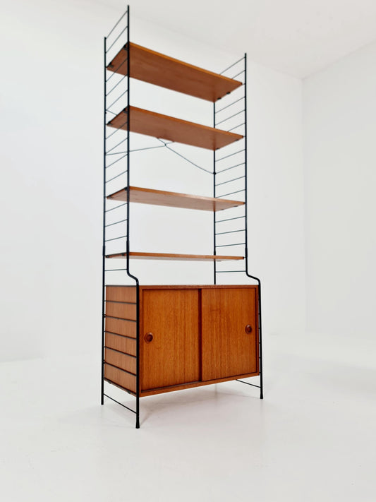 Free standing String shelf-system, bookcase with cabinet teak by WHB Germany, 1950s