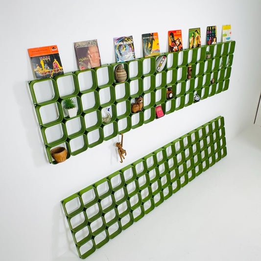 Set of 2 space age green square Plastic Wall or Ceiling Panels system Switzerland 1970s