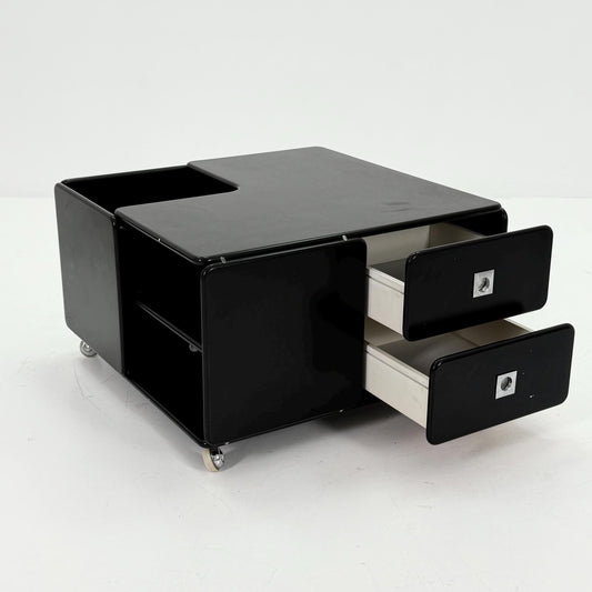Rare Mid-Century Black Coffee Table by Tecta Germany | Bauhaus Design 1980s | Sliding Drawers on Wheels