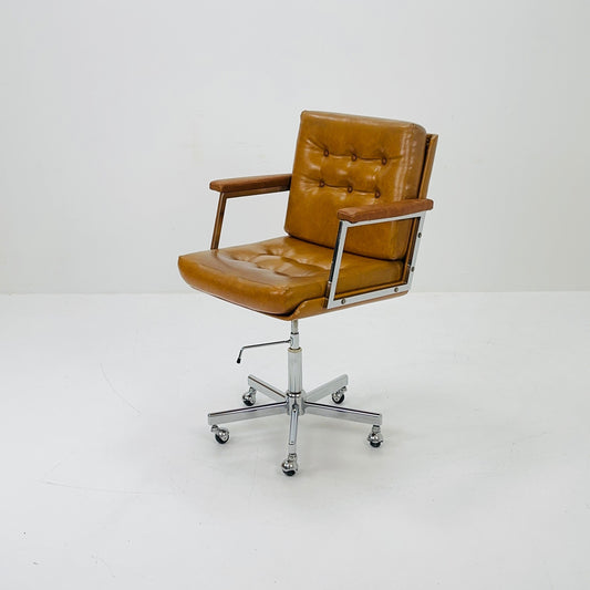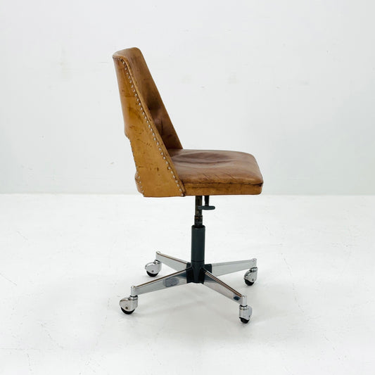 Mid century swivel desk chair cognac leather 1980s Germany