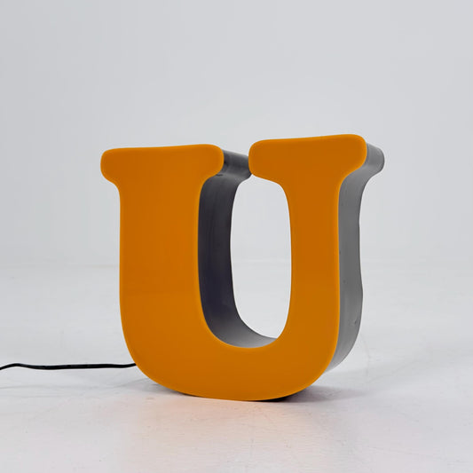 Mid century Illuminated Letter “U” – Orange Plexiglass & Metal Sign Germany 1980s