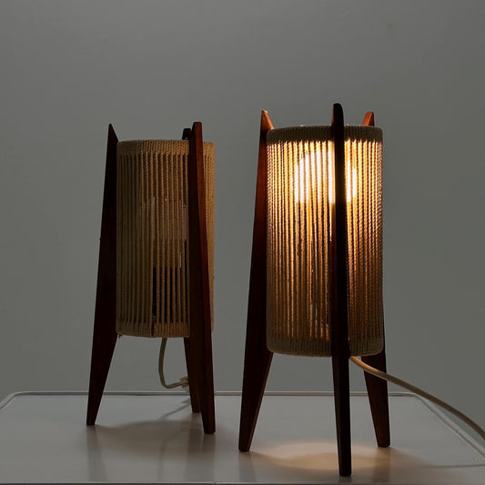 Pair of Mid-Century Danish Teak & Sisal Rocket table Lamps | Sweden 1960s