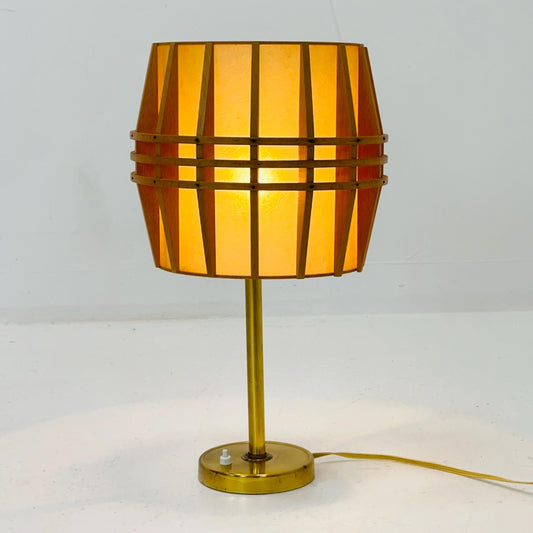 One of two Swedish vintage table lamps in brass and wood by Markslöjd, 1980s