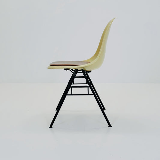 Mid-Century DSS Fiberglass Chair by Charles & Ray Eames for Herman Miller Cream White Shell, Brown Hopsak Upholstery, Germany, 1960s