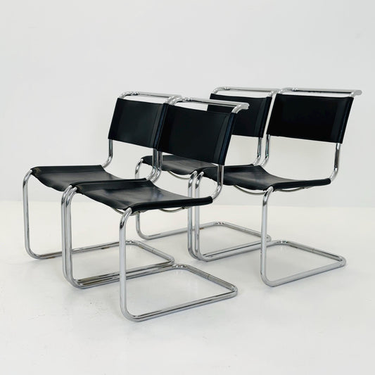 Set of 4 Mid-Century Vintage S33 black Chairs by Mart Stam & Marcel Breuer from Thonet 1980s
