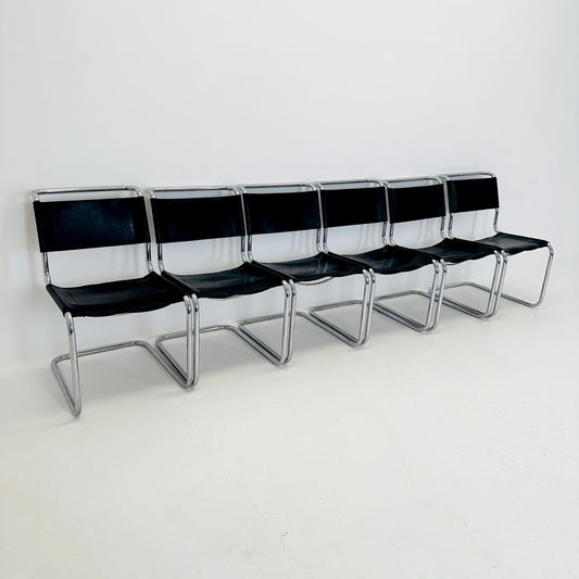 Set of 6 Mid-Century Vintage S33 black Chairs by Mart Stam & Marcel Breuer from Thonet 1980s