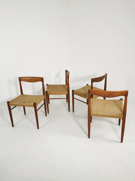 Danish teak & danish cord dining chairs by H. W. Klein for Bramin, 1960s, set of 4