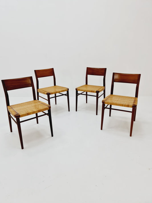 Mid Century German teak and rattan chairs by Georg Leowald for Wilkhahn, 1960s, Set of 4