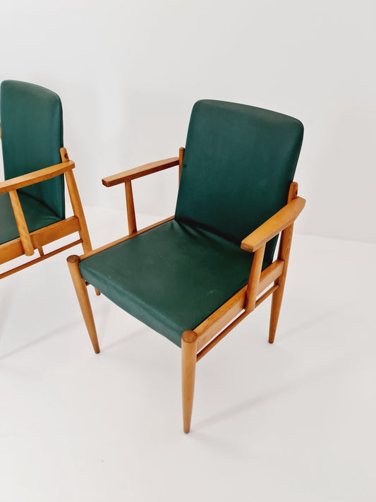 Rare Vintage Midcentury German beech Armchair set of 4 , 1950s