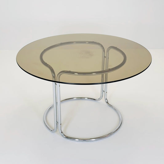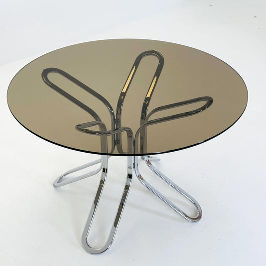 • Mid-Century Chrome Dining Table by Gastone Rinaldi for Rima, Italy 1980s – Smoked Glass, Bauhaus Design