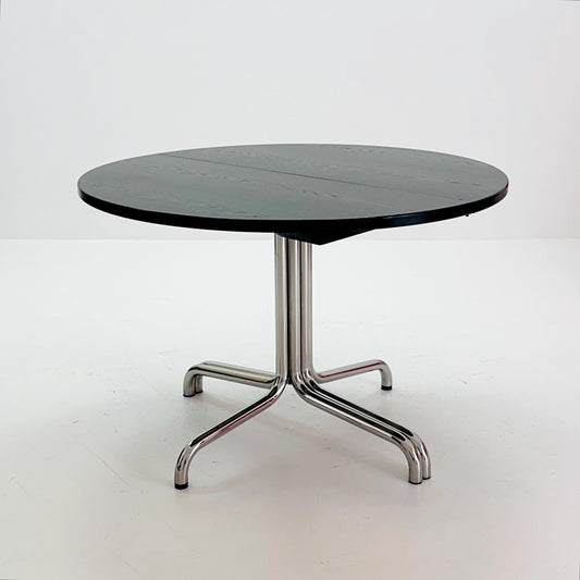 Mid Century Extendable Dining Table by Thonet, Model 1052 – Black Laminate & Chrome, Germany 1980s