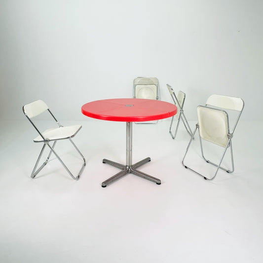 Mid century Italian Plano Folding Red Table and 4 chairs by Giancarlo Piretti, 1970s