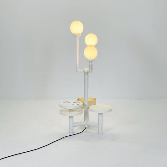 Mid-Century Space Age Floor Lamp & Side Table Chantal No. 8925 YPMA BV Opal PMMA Globes, Bar - Planter Stand Holland, 1970s