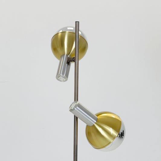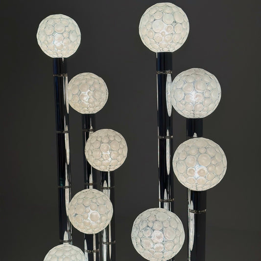 1 of 2 Mid-Century Vintage Chrome Floor Lamp with Glass Globes, Italy 1970s