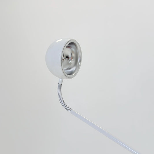 Space age white metal Adjustable Floor Lamp / 70s Mid Century Space Age Italian Design / Goose Neck Eye Ball Floor Lamp