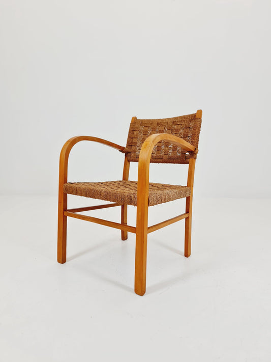 Bauhaus vintage papercord armchair by Ehrich Dieckmann, 1930s