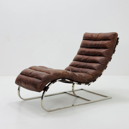 Mid Century Lounge chair leather and chrome, Ludwig Mies van der Rohe Italy '