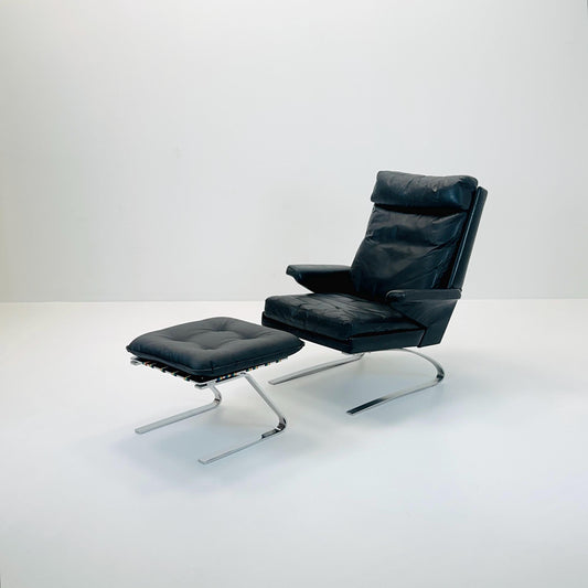 mid Century Black Swing Lounge Chair & Ottoman by Reinhold Adolf for Cor Germany 1960s